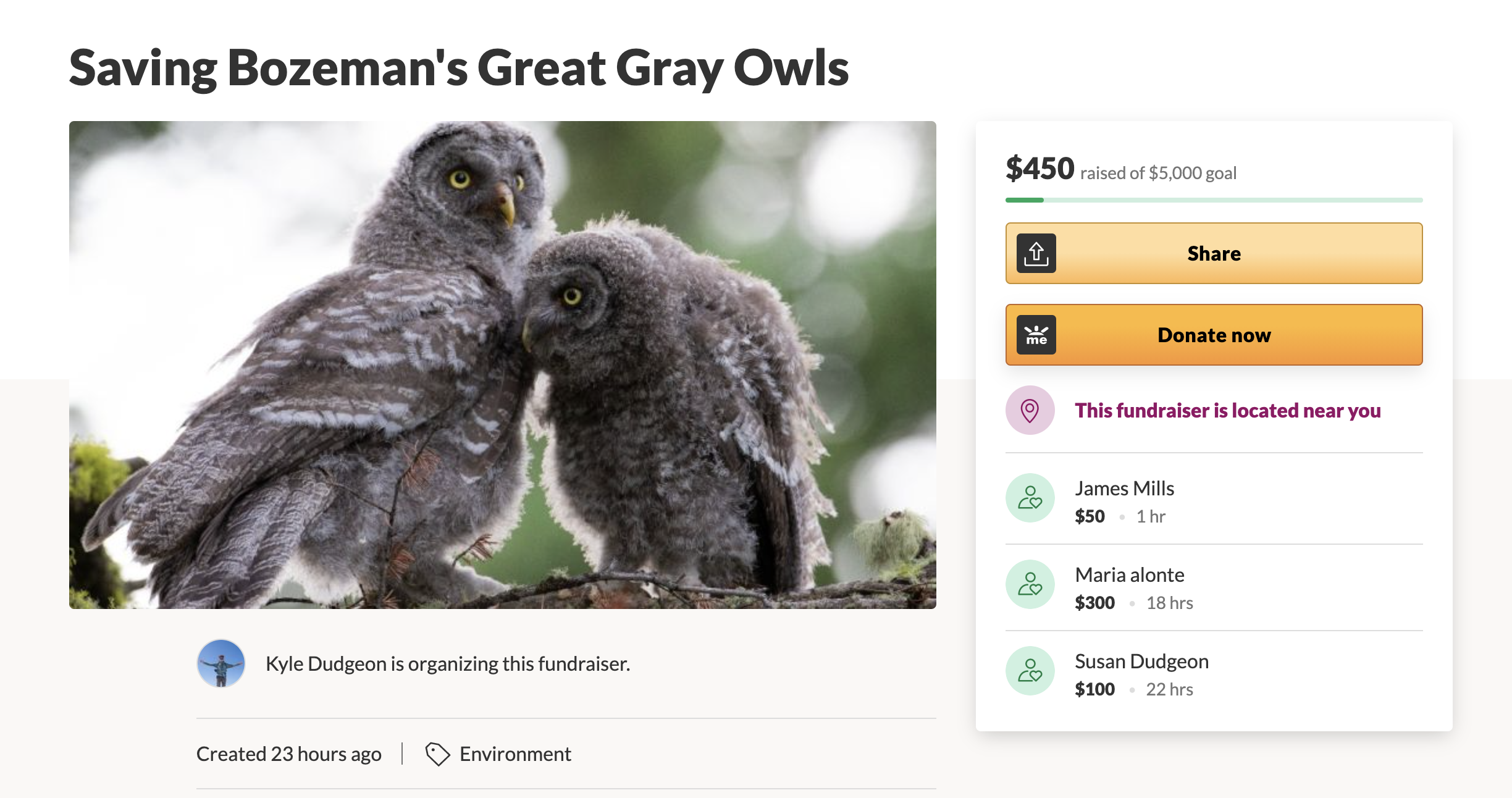I am incredibly excited to announce that I have started a fundraiser to fund my first film project this summer! It aims to raise awareness for Great Gray Owls in the Bridger Mountains of Montana. More information can be found by clicking the GoFundMe link here. Great grays, like many species, are directly threatened by habitat loss. Unfortunately in this part of Montana, large logging projects on public lands are one of their greatest threats. After being tied up in this exact situation last summer, I am now, more than ever, motivated to prove to the U.S. Forest Service why we need to limit logging of old growth forests throughout the state.